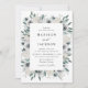 Convites florais elegantes com detalhes de casamento enquadrados por anêmonas brancas de aquarela, rosas de marfim e folhas verdes de sábio escuro. Os convites de casamento de anêmona branca invertem-se para mostrar um belo fundo verde-aquoso de sábio escuro.
