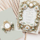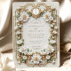 Ponha o tom para o seu dia de casamento com este belo design de convite, com anêmonas brancas delicadas cercadas por uma folhagem verde esmagadora. O cartão é enquadrado por ornamentado falso ouro barroco e padrões inspirados na arte, dando-lhe um eterno e uma sensação sofisticada. O fundo verde macio adiciona um toque de elegância, fazer perfeito para casamentos formais ou eventos românticos. Por favor, note que o ouro e os efeitos gravados fazem parte do design impresso e não incluem folhas metálicas reais nem texturas levantadas.