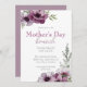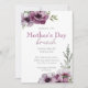 Este elegante convite personalizado apresenta um tema de Brunch de Dia de as mães floral. Os anêmonos roxos estilo aquarela e a respiração do bebê soam nos cantos superior direito e inferior esquerdo.