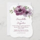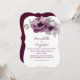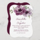 Este convite de casamento romântico apresenta um design floral em estilo aquarela. Um buquê de anêmonas de cor merlot é retratado na parte superior. Vegetação delicada acentua as flores de anêmona. As informações do casamento são impressas na parte inferior.