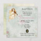 Um convite batismal para uma garota. Um anjo vintage em um plano de fundo de textura típico de vintage. Uma doce imagem de um anjo tocando violino com flores em seu cabelo. Esta imagem vintage parece curada e desbotada das mãos do tempo, e tem um tom amarelado vestido. O fundo é uma textura delicada e fraca, em branco cinza, com um papel antigo.