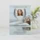 Convite à memória funerária, com asas de anjo com fotografia, e concha na praia, celebrando o modelo de vida fácil de personalizar.