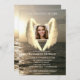 Convite à memória funerária, com asas de anjo e pôr do sol no mar, celebração do modelo de vida fácil de personalizar.