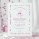 Saúde a 100 anos de convite de aniversário. Dois copos de vinho e uma picada botânica soam o texto simples. Está rodeado por uma armação de rabisco rosa. Moderno e mínimo, este convite cor-de-rosa está muito na tendência para Primavera e Verão de 2025.