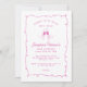Saúde para 30 anos de convite de aniversário. Dois copos de vinho e uma picada botânica soam o texto simples. Está rodeado por uma armação de rabisco rosa. Moderno e mínimo, este convite cor-de-rosa está muito na tendência para Primavera e Verão de 2025.