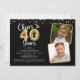 Celebrar um aniversário de 40 anos com esses convites de festas elegantes e festivos com o título CHEERS TO 40 ANOS com números falsos de balões metálicos de ouro e tipografia moderna da escrita, duas fotos e confete na sua escolha de cor de fundo (mostrada a preto). ASSISTÊNCIA: para obter ajuda com a modificação ou personalização do design, transferir o design para outro produto ou, se você quiser coordenar itens, entre em contato com o designer ANTES de fazer o pedido via Chat Zazzle ou email makeitaboutyoustore@gmail.com.