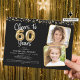 Celebrar um aniversário de 60 anos com estes convites de festas elegantes e festivos com o título CHEERS TO 60 ANOS com números falsos de balões metálicos de ouro e tipografia moderna da escrita, duas fotos e galerias de ouro e confete na sua escolha de cor de fundo (mostrada a preto). ASSISTÊNCIA: para obter ajuda com a modificação ou personalização do design, transferir o design para outro produto ou, se você quiser coordenar itens, entre em contato com o designer ANTES de fazer o pedido via Chat Zazzle ou email makeitaboutyoustore@gmail.com.