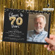 Celebrar um 70 de aniversário com estes convites de festas elegantes e festivos com o título CHEERS TO 70 ANOS com números falsos de balões metálicos de ouro e tipografia moderna de escrita, uma fotografia e um confete na sua escolha de cor de fundo (mostrada a preto). ASSISTÊNCIA: para obter ajuda com a modificação ou personalização do design, transferir o design para outro produto ou, se você quiser coordenar itens, entre em contato com o designer ANTES de fazer o pedido via Chat Zazzle ou email makeitaboutyoustore@gmail.com.