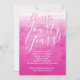 Anima-se a 40 anos As mulheres cor-de-rosa são aniversário de 40 anos Convites de festas moderno. Cor d'água rosa Ombre Cartões de convite para arte moderna, impressos personalizados. Fundo de aquarela gradiente de lavagem rosa-quente vibrante com texto branco e convites de script, perfeito para uma sofisticada e sofisticada e sofisticada, brunch, bubble ou evento divertido!
