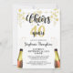 Comemore qualquer aniversário com este convite de aniversário de # ANOS, CHEERS TO # YEARS, da idade editável, em preto e ouro, com estrelas douradas e galerias de garland. Moderna tipografia de guiões e garrafas de champanhe. Ideal para aniversários adultos para ele ou ela. Entre em contato com o designer por meio do Zazzle Chat ou makeitaboutyoustore@gmail.com se você quiser que este design seja modificado, em outro produto ou quiser coordenar itens.