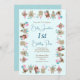 Convite de Piquenique de 1º Aniversário dos Animais Bebês Fofos.