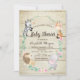 Animais bonitos, Mason Jar, e luzes de cordas no convite para chá de fraldas de textura de madeira. Esses convites para chuveiros de bebês elefantes são facilmente personalizados para seu evento simplesmente adicionando seus detalhes.