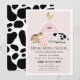 Este convite de 1º aniversário para meninas "roinchar, mugir, relinchar, cocoricó" apresenta um porco, cavalo, galinha e vaca com um celeiro rosa em um fundo rosa bege enquadrado por uma borda branca. O verso apresenta um fundo branco com padrões de vaca pretos. Personalize de acordo com as suas necessidades. Você pode encontrar produtos correspondentes na minha loja.