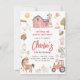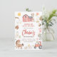Convocando todos os animais de festa! Celebre o grande dia do seu pequeno com este convite de aniversário editável de animais da fazenda! Um design neutro em termos de gênero, apresentando adoráveis animais da fazenda ao redor da borda dos cartões, vestidos com chapéus de festa e segurando balões. O sol está brilhando, há um celeiro vermelho, um pequeno letreiro para a fazenda e um trator. Este convite temático de quintal de fazenda é perfeito para o aniversário de qualquer menino ou menina na fazenda. O verso dos cartões apresenta um padrão de xadrez em aquarela vermelha para um toque rústico e campestre. Navegue pela coleção para encontrar itens correspondentes ou visite nossa loja para mais convites de festa de aniversário.