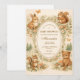 Este encantador design de chá de bebê florestal apresenta adoráveis animais da floresta reunidos em torno de uma delicada moldura vintage, criando uma cena calorosa de livro de histórias perfeita para celebrar a chegada de um pequeno. Ilustrações doces de um coelho, guaxinim, esquilo e coruja são cercadas por cogumelos minúsculos, pinhas, flores silvestres e folhagens suaves da floresta. A paleta neutra e quente e o estilo de aquarela suave dão ao design um clima aconchegante e nostálgico de berçário inspirado em ilustrações clássicas de livros infantis. Perfeito para chás de bebê temáticos na natureza, celebrações florestais ou encontros rústicos na floresta.