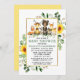 Watercolor Woodland Animal Chá de fraldas Invitation. Os bebês incluem Urso, Veado, Moose, Raccoon, Coelho Coelho, Raposa e Coruja em folhas de eucalipto e verde florestal. Dourado quadro com vegetação botânica e girassóis.