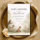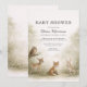Convite de chuvada de bebê com animais da floresta apresentando adoráveis criaturas da floresta em um design suave inspirado na natureza. Criado para celebrar seu pequeno com um estilo rústico aconchegante que se sente quente e convidativo. Perfeito para chuvadas de bebê, temas de floresta e celebrações neutras em relação ao sexo. Texto editável para fácil personalização. Layout limpo e pronto para impressão.