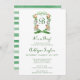 É um convite para o chá de fraldas Boy seria perfeito para o seu chá de fraldas. Ele tem uma crista de aquarela verde monificada cercada por verde e animais florestais, seu primeiro pacote de alegria inicial e nome, e uma cor d'água verde coordenada riscada para trás. É único e precioso.