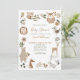 Crie o convite perfeito para o chá de fraldas, neutro em termos de gênero, com este adorável design de animais boho-silvestres, com animais pintados à mão em torno do convite, incluindo um urso, cervo, coruja, raposa, esquilo e mais, com tipografia escrita à mão. A parte traseira da placa apresenta uma ilustração de aquarela correspondente. Copyright Elegant Invites, todos os direitos reservados.