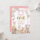 Convite de primeiro aniversário de animais da floresta de primavera rosa coquete
