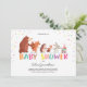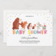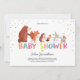 Europeia: Um convite para chás de fraldas fofo e divertido! Tudo desenhado à mão! Bons animais com confete.