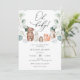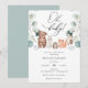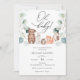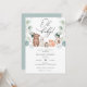 Convite para chá de fraldas com aquarela de eucalipto e ilustrações adoráveis de animais florestais. Personalize com os detalhes do evento para celebrar a mãe a ser.