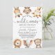 Celebre a chegada iminente com o nosso convite de chá de bebê "Selvagem Um" Safari! O design apresenta um grupo de adoráveis animais da selva e folhagens tropicais rústicas, perfeito para um chá de bebê temático de safári único. Personalize seus convites hoje e comece a celebração!