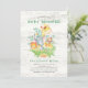 Chá de fraldas de animais da selva giratória, com um jacaré, elefante, girafa, macaco, leão, tigre e tartaruga, com fundo branco de madeira. Perfeito para rapazes, raparigas ou chá neutro.