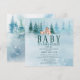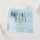 Lindo convite de chá de bebê com cena da terra das maravilhas de inverno em aquarela para chá de bebê de menina ou menino. Vire nosso convite para ver uma parte de trás coordenada para um toque extra especial.
