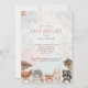 Convidar convidados para a celebração do chá de fraldas com estes convites de vitrines de animais brancos, de floresta, com bebês bonitos (veados, raposa, ouriço, esquilo, coelho, guaxinim e coruja com uma borboleta marrom.) O fundo é suavemente decorado com verde e vislumbres de palavras do livro de histórias a espreitar.