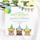 Desenho original de Komila Y. Tigre, ursinho e bico lindos animais de festa selvagem ilustrando o convite de aniversário.
