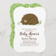 Celebre o novo bebê a caminho com o nosso adorável design chá de fraldas de urso pardo-pardo, adorável, perfeito para o tema dos animais da floresta! Perfeito para um amante de urso com um bebê a caminho. O urso-cama está deitado num prado de floresta com flores amarelas. Excelente para um Chá de co-Ed ou Neutro por Gênero.