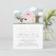 Este belo e moderno convite de chá de fraldas virtual/zoom/facebook/online para uma menina, "oink, moo, cock-a-doodle do", apresenta um porco, galinha e vaca com um celeiro cor-de-rosa com árvores e céu azul. O verso apresenta um fundo branco com cinzas leves de gingham/xadrez/búfalos. Personalize para suas necessidades. Você pode encontrar produtos correspondentes na minha loja.