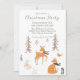 Este convite de festa fofo apresenta um tema de bosque de inverno com um design de arte folclórica escandinava. Vários animais da floresta são retratados entre árvores em uma floresta de inverno. Uma pequena raposa está na parte inferior com um pássaro acima dela. Um cervo está colocado no centro, e um pequeno coelho está à esquerda. Frutas e folhagens acentuam a imagem. É perfeito para um chá de bebê de inverno, aniversário ou festa de Natal.