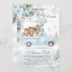 Animais do Bosque de Inverno Caminhão Azul Convite de Chuvada de Bebê Floco de Neve Menino Baby É Frio Lá Fora