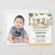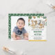 Convite de aniversário com tema Safari, com verde tropical e água dourada verde e um grupo de animais da selva fofinha