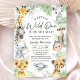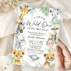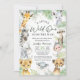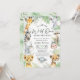 Celebre a chegada iminente com o nosso convite de chá de bebê "Fera Solitária" Jungle Safari! O design apresenta um grupo de adoráveis animais da selva e folhagens tropicais rústicas, perfeito para um chá de bebê temático de safári único. Personalize seus convites hoje e comece a celebração!