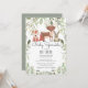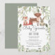 Com um lindo cervo, raposa, coelho e folhas da floresta, este convite elegante e neutro em termos de gênero para chá de bebê, sprinkle ou chá de casal pode ser personalizado com as informações especiais do seu chá de bebê. O verso apresenta folhas da floresta espalhadas em um fundo verde sage. Criado por Thisisnotme©