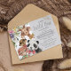 Cute Safari Animal Blue Wild Um convite para o Chá de fraldas temático - Design apresenta os quatro adoráveis bichos-da-água safari (girafa, meerkat, urso panda e macaco), decorados com flores tropicais e verde botânico. Um chá de fraldas moderno modelo sobre um fundo azul pálido combinado com um roteiro de caligrafia e fontes serif que lê 'Um pequeno selvagem está a caminho! Todo texto é facilmente personalizado.