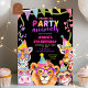 Selvagens Negras e Coloridas Um Safari Convite Para Animais, Chamando Todos Os Animais De Aniversário De Aniversário de criança, Selva Editável