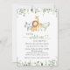 Convide amigos e família de estilo e dê o tom para seu dia especial com este charmoso convite para chás de fraldas. Design apresenta animais safari (hippo, leão, elefante, girafa) e verde sobre fundo branco.