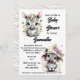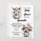 Um ai tridimensional divertido e moderno gerou um gráfico com zebras bebê bonitinhas e adoráveis sorrindo suavemente emoldurado por flores florais de cor pastel. Um está vestindo um chapéu largo e o outro tem flores suaves ao seu redor. Eles são colocados em um fundo branco que tem modelos personalizadas de texto decorativo e de script para seu texto personalizado. O dorso tem um bege pastel e uma zebra branca tem impressão. Estes são ideais para qualquer evento de chá de fraldas de verão na selva, no safari, no animal selvagem ou na vida selvagem. Os downloads instantâneos incluem a parte frontal e traseira do convite.