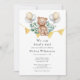 Basta criar um belo convite para o chá de fraldas do tema animal da floresta com este modelo, com um urso bonito, balões, refeitórios e um talude botânico de eucalipto folhado. DICA: Verifique os outros itens nesta coleção com o mesmo design para obter uma experiência de compro completa e fácil para a sua parte chá de fraldas.