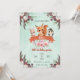 convite de animal de desenho animado fofo coelho esquilo pinguim, floral, primavera, convite moderno e chique
