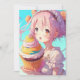 Garota anime segurando um cupcake de aniversário convites de festas de aniversários de menina pastel bonito.