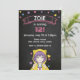 A cute anime girl birthday invitation with a chalkboard background and colorful hearts.