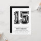 Um convite de 15. Design preto e branco simples com o número 15 em um fundo preto. Para editar este modelo, clique em personalizar mais.