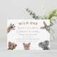 Celebre seu dia especial com nosso charmoso Convite de Aniversário para Animais da Floresta Safari! Esta design de capricho apresenta um encantamento delicioso de criaturas florestais, incluindo uma raposa lúdica, um fofinho de elefante perfeito para uma floresta ou festa de aniversário natural. As ilustrações de cor aquosa e tons de terra tornam este convite ideal para os meninos ou meninas que completam uma ou qualquer idade.