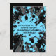 Convites de festas de aniversários de pincel giros 5x7 com placas de pintura azul e preta em uma cinza esbranquiçada, preto e fundo azul com padrão de explosão solar. É fácil personalizar.