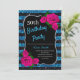 Convites Aniversário Black Blue Stripes Glitter Rosas Rosa
